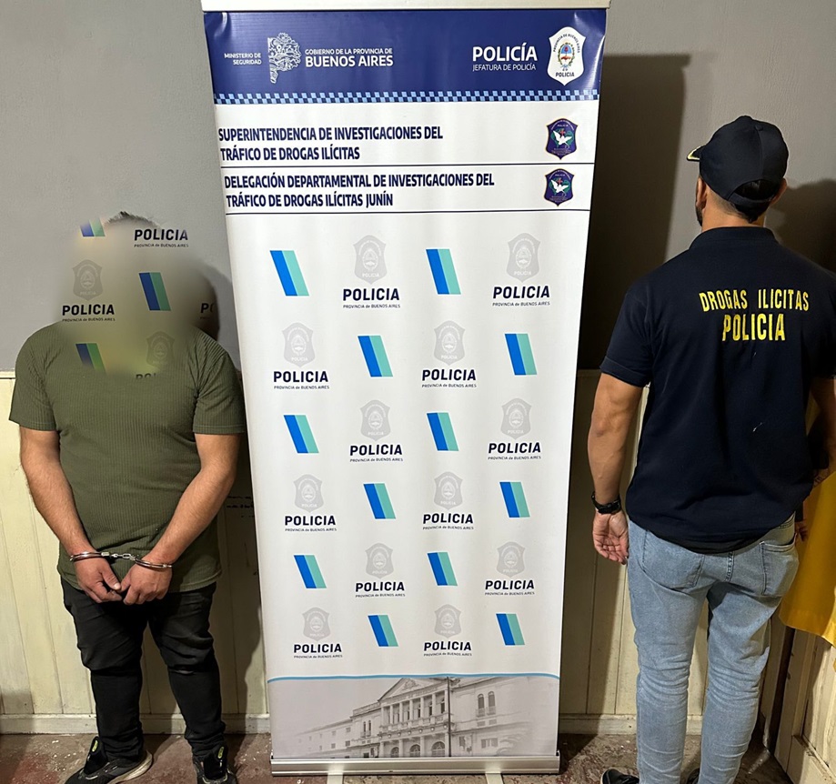 La Delegación Departamental de Investigaciones del Tráfico de Drogas Ilícitas Junín detuvo a un narco con un kilo de cocaína, en Chacabuco, en el contexto de los operativos sorpresivos que llevan adelante los agentes para identificar personas y registrar vehículos.