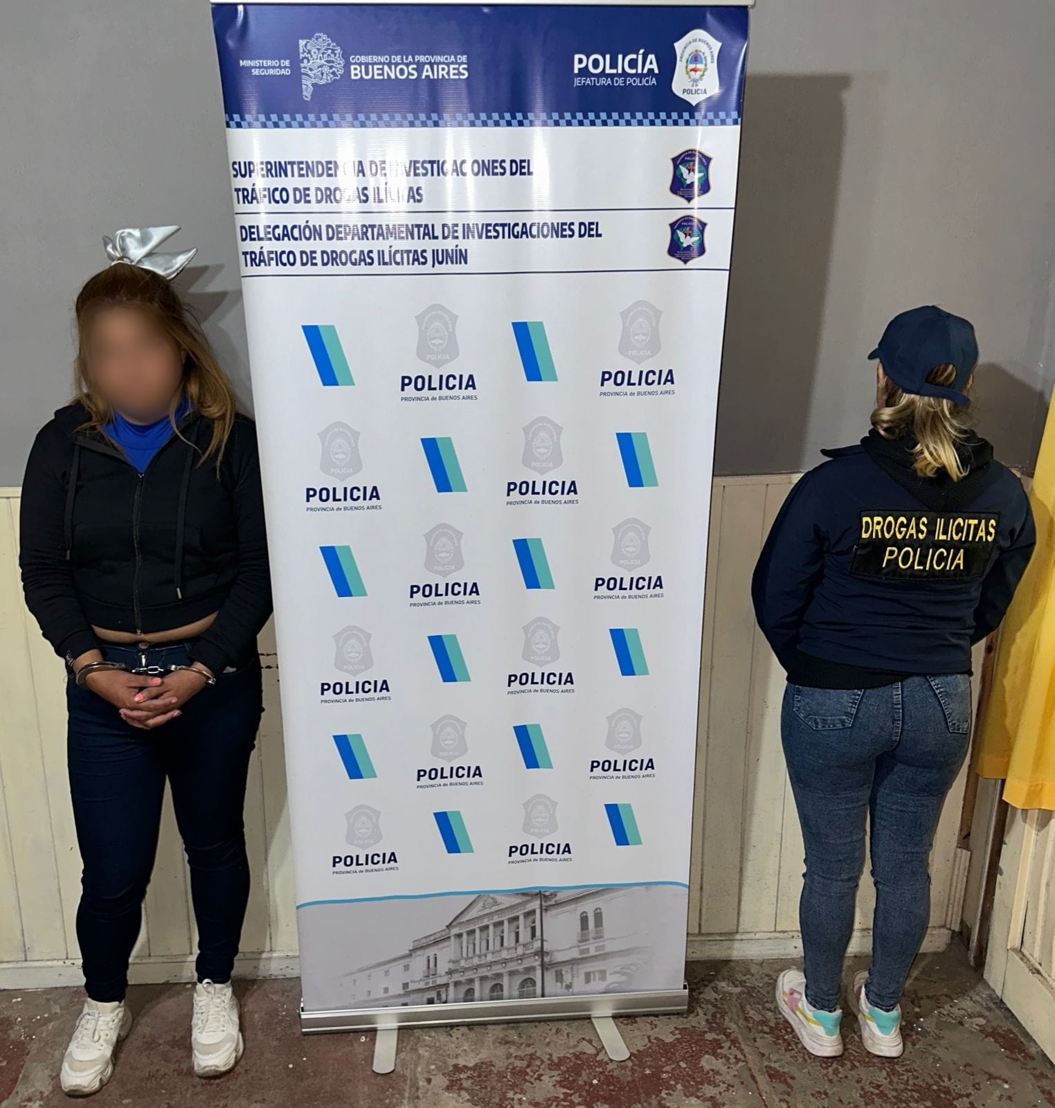 Durante el operativo realizado en la intersección de la Ruta Nacional 188 y la avenida de Circunvalación de Junín, una mujer que descendía de un colectivo de larga distancia proveniente de Rosario fue interceptada por la policía.