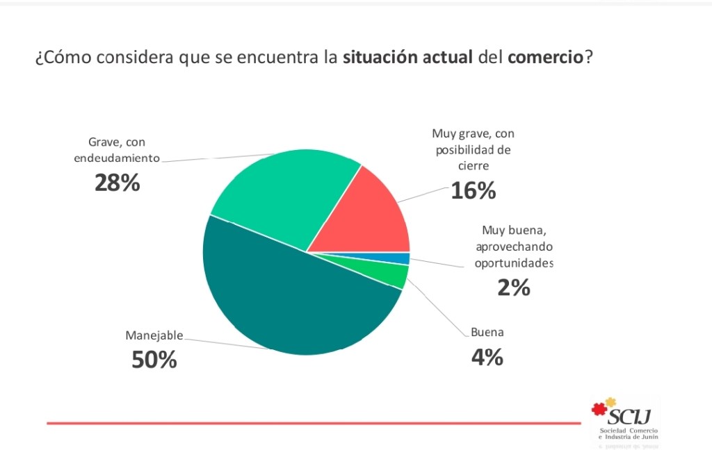 La encuesta revela que el 16 por ciento de los comerciantes enfrenta graves problemas económicos, con riesgo de cierre inminente, mientras que el 28 por ciento se encuentra en una situación crítica debido a un alto endeudamiento.
