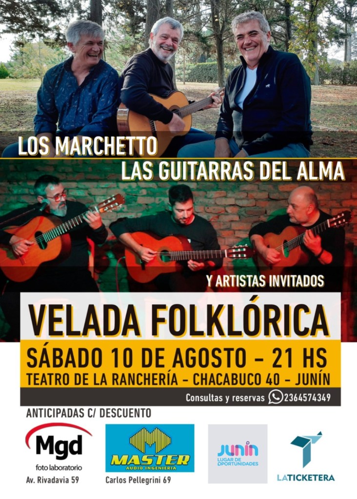 Este sábado 10 de agosto, a las 21 horas, se unen dos conjuntos de gran trayectoria y calidad para celebrar una noche donde la música folklórica será la protagonista. Los Marchetto y Las Guitarras del Alma aunarán su arte para ofrecer un recital inolvidable, junto a invitados especiales en el Teatro La Ranchería (Chacabuco 40).