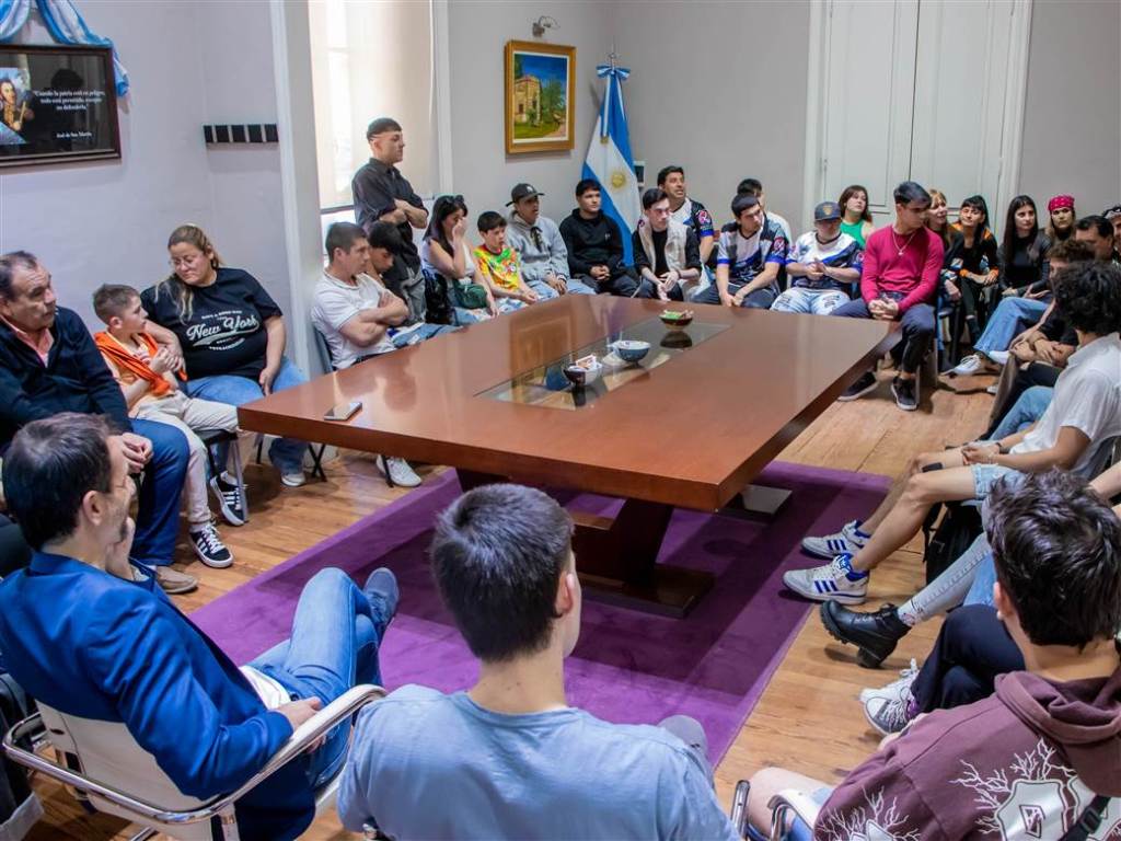 El intendente de Junín, Pablo Petrecca, recibió en su despacho a los jóvenes artistas locales que participaron en los festejos de la Fiesta de la Primavera, celebrados los días 20, 21 y 22 de septiembre en el Parque Borchex. Durante la reunión, el mandatario les entregó un reconocimiento por su esfuerzo, destacando el éxito total del evento.