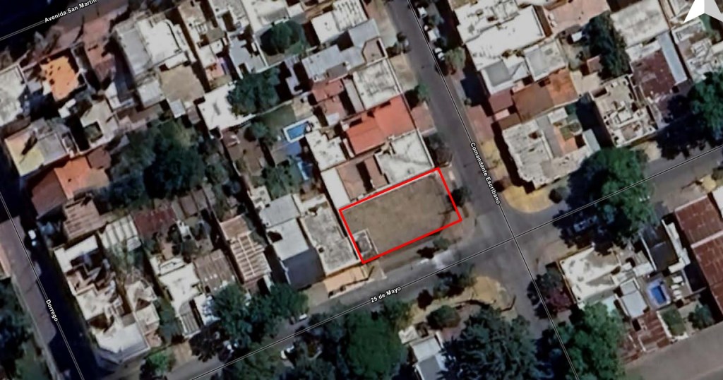 Según pudo precisar Edición Noroeste, se trata de un preciado lote de 312 metros cuadrados, situado en la esquina de 25 de Mayo y Comandante Escribano, con un precio de mercado estimado de unos 40 mil dólares.