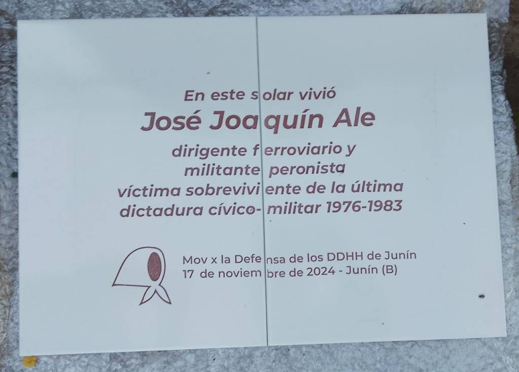 En un acto cargado de emociones y recuerdos, el Movimiento por la Defensa de los Derechos Humanos llevó a cabo la colocación de una Baldosa por la Memoria en homenaje a José Ale, víctima de la Dictadura Militar y testigo sobreviviente de aquel oscuro período.