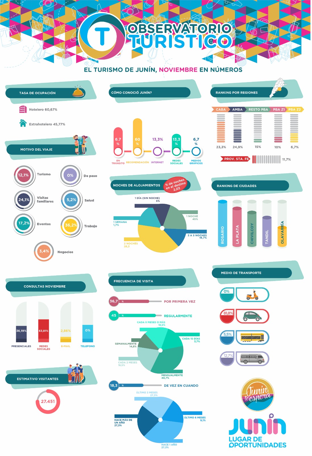 En términos de alojamiento, el sector hotelero alcanzó un 60,67% de ocupación, mientras que la oferta extrahotelera (como alquileres temporarios y cabañas) logró un 45,77%. Estos números evidencian un interés creciente por Junín como destino turístico, especialmente en un mes de noviembre que históricamente no ha sido de alta demanda.