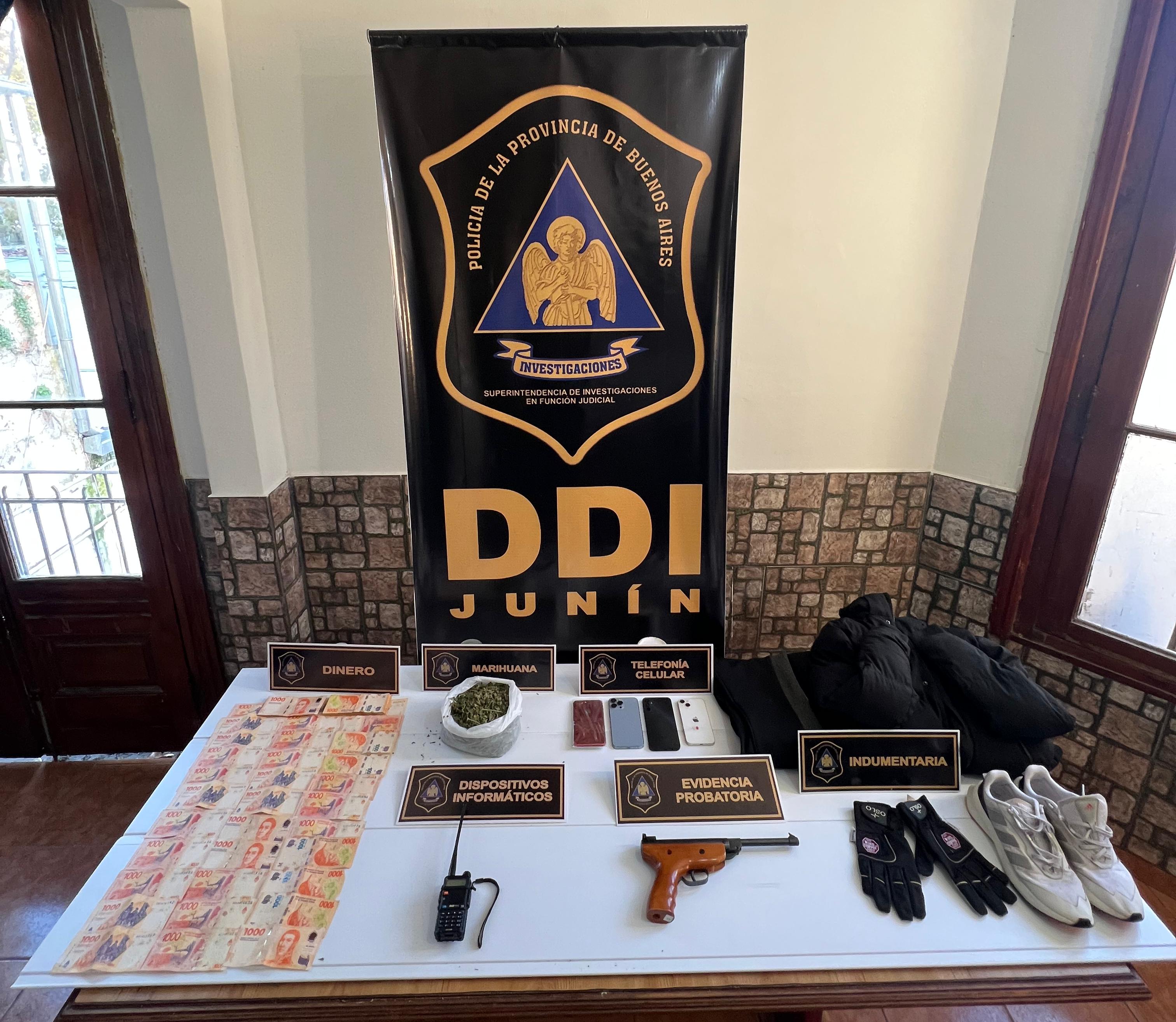 Durante los allanamientos, los efectivos secuestraron cuatro teléfonos celulares presuntamente utilizados por la banda delictiva, un handy con frecuencia policial —dispositivo que, según relataron las víctimas, fue utilizado por los asaltantes durante el hecho—, y un pistolón de gas comprimido. También fueron incautados $71.000 en efectivo y un frasco de vidrio que contenía 187 gramos de marihuana.