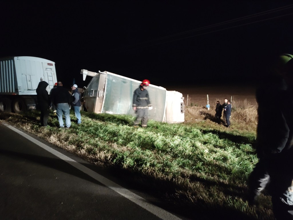 Bomberos Voluntarios de Rojas acudieron con dos móviles para rescatar al chofer del camión volcado, que había quedado atrapado. Tras ser liberado, fue asistido por una ambulancia del SAME, que lo trasladó de urgencia a la guardia del Hospital Municipal Unzué de Rojas.