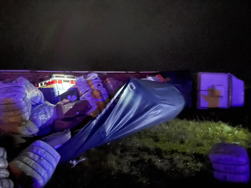 A raíz del choque, el camión volcó sobre la cinta asfáltica, y gran parte de su carga, compuesta por paquetería, quedó desparramada en el lugar. El tránsito se vio reducido durante varias horas, y trabajó personal del Corredor Vial para liberar la calzada.