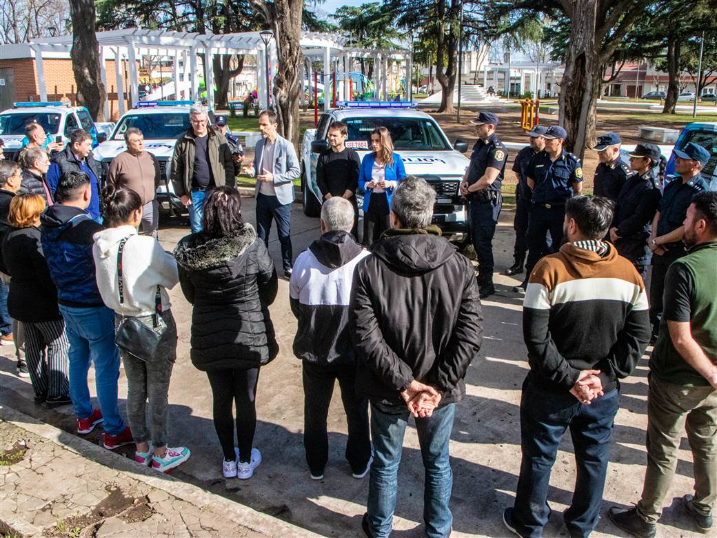 La entrega, que incluyó cinco camionetas y un sedán en proceso de blindaje, busca fortalecer la seguridad, principal reclamo de los vecinos, según expresó el intendente.