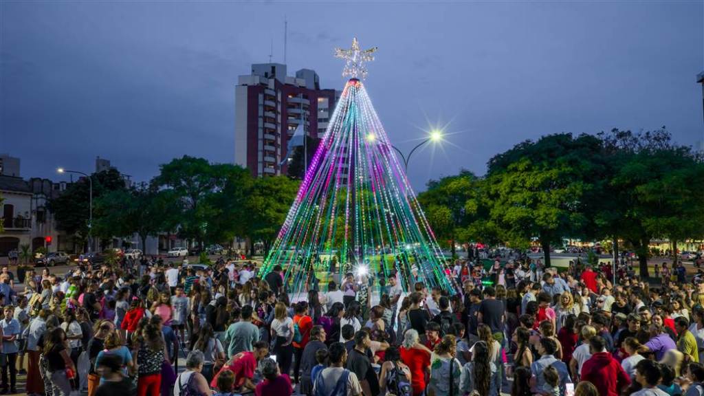 El encuentro tuvo la participación de la banda municipal Juan P. Oviedo y del grupo Los Gringos, que acompañaron la ceremonia con un repertorio festivo. Además, el armado del árbol incluyó el trabajo de alumnos de las escuelas técnicas 1 y 2, quienes colaboraron en la estructura que cada año se convierte en un punto emblemático de la ciudad.