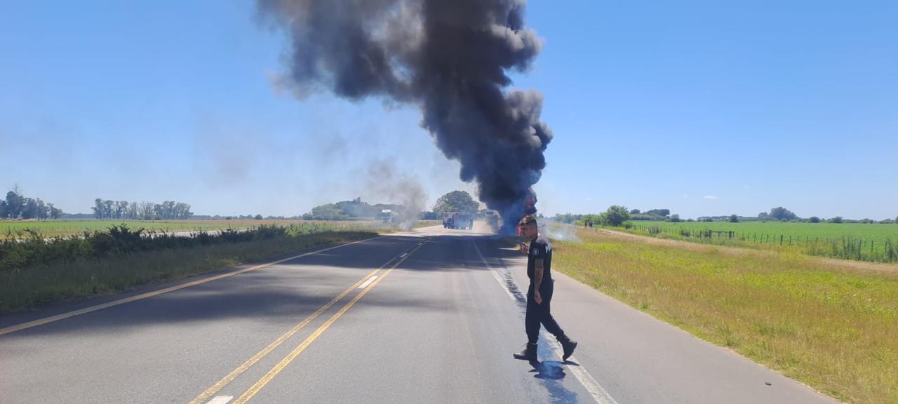 Un camión marca Iveco se incendió por completo este martes en la Ruta Nacional 7, km 249, mano descendente, a la altura de Junín.