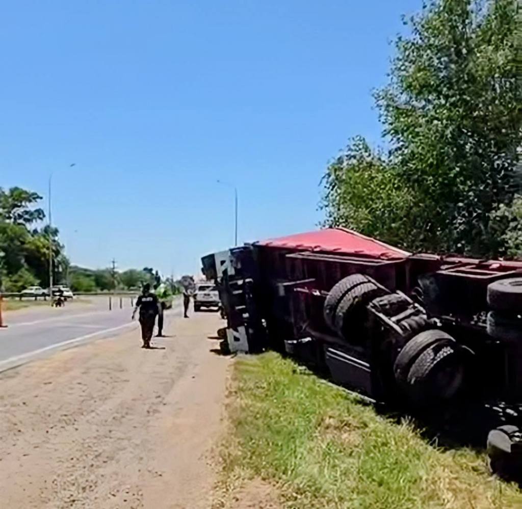 Un camión que transportaba aceite comestible volcó este martes 30 de diciembre, cerca del mediodía, sobre la Ruta Nacional 188, a la altura de la Clínica La Pequeña Familia, en Junín.